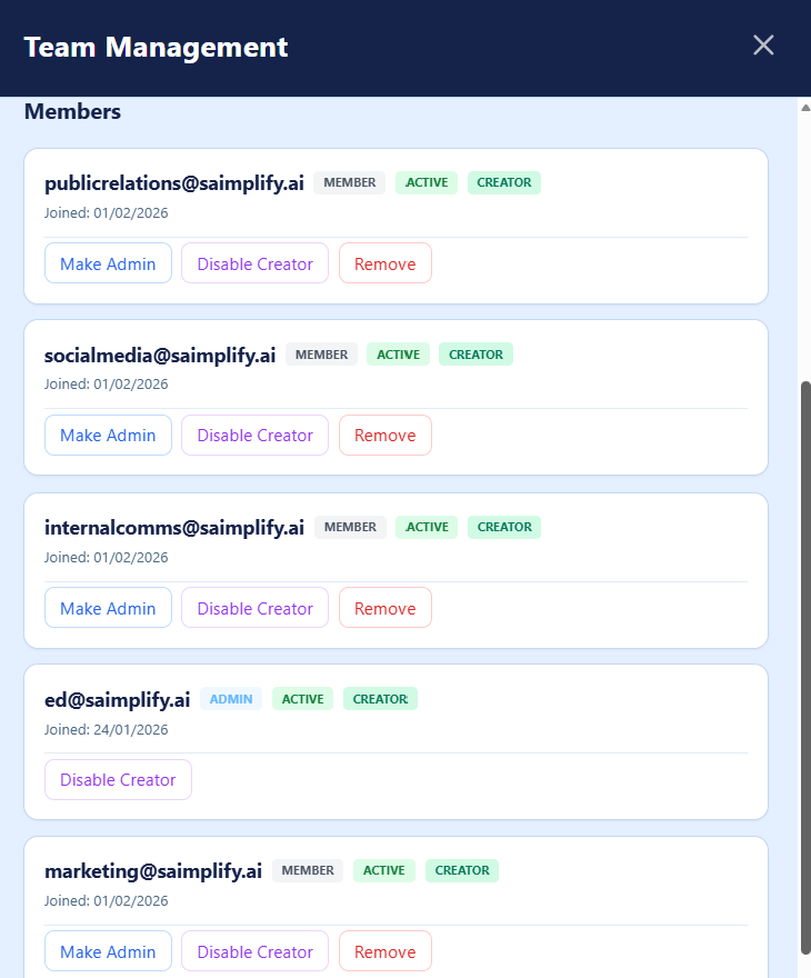 Share brand voices and content formats across your team.
